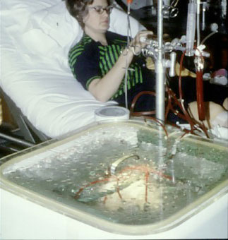 In Autumn 1965, the local hospital obtained a Travenol twin-coil dialysis machine for acute renal failure (as shown here), and in 1967 a small dialysis and transplant programme were commenced in the city. But to be eligible for dialysis, you had to be eligible for transplantation, which had strict age limits – at first age 45 or younger, and no other pathology. Some centres required a donor too. Many were not eligible.
